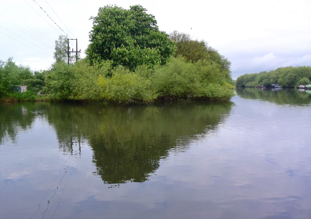 Reading, Berkshire. The end of the peninsula straight ahead. The Thames on the right, and the River Kennet coming off on the left.