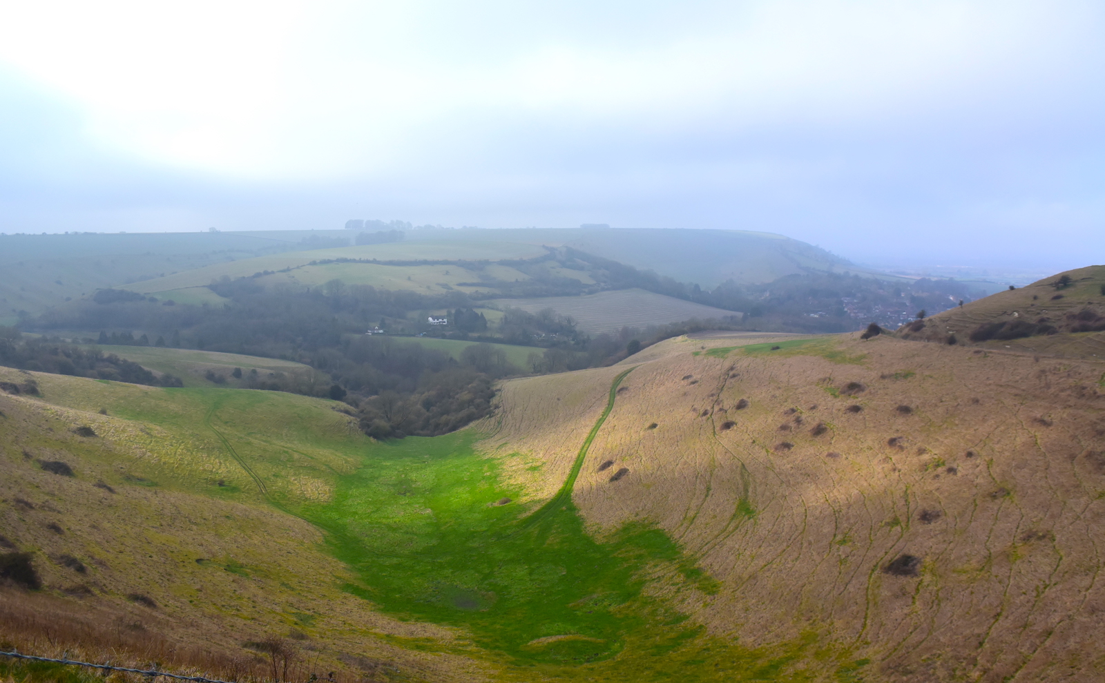 Looking north to Picquet Hill (on the right), Wiltshire. Edington is down over the other side.