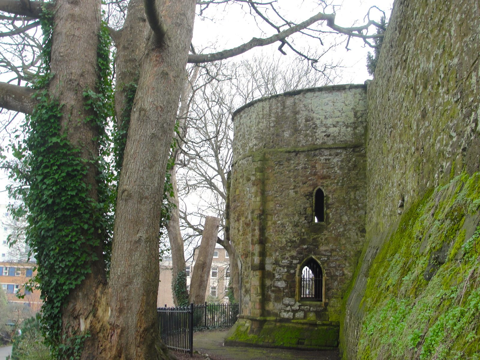 A section of the walls at Exeter where Saxon masonry has been found. This is the path leading up to Athelstan’s Tower in Northernhay Gardens.